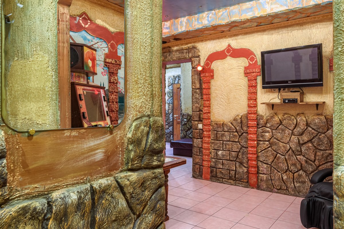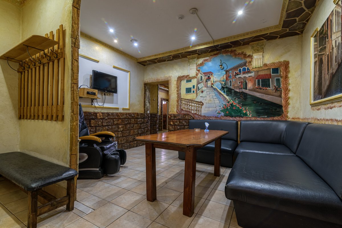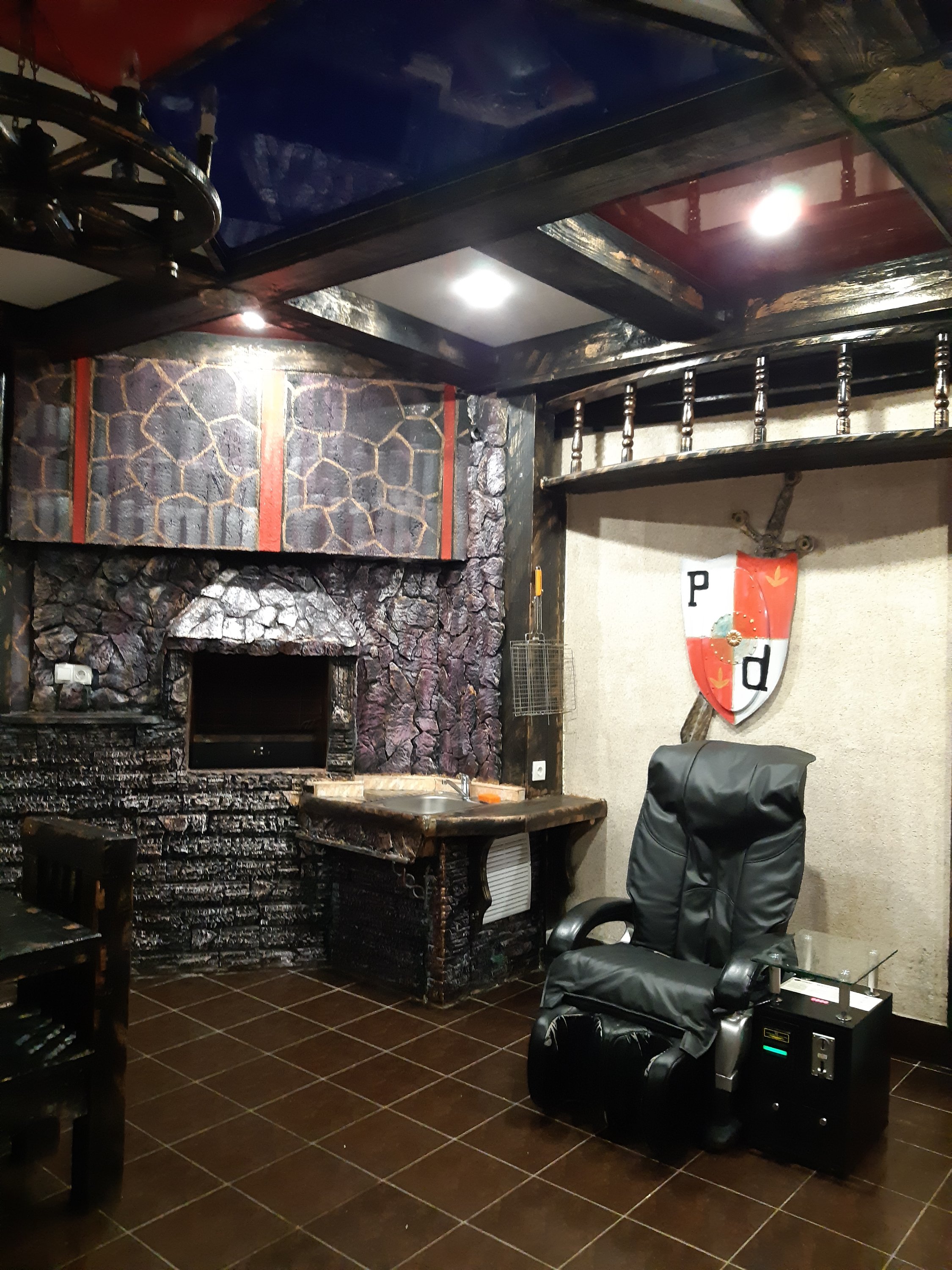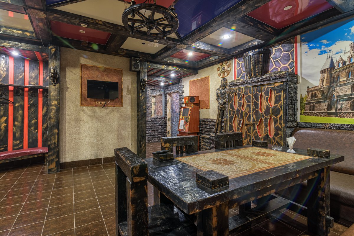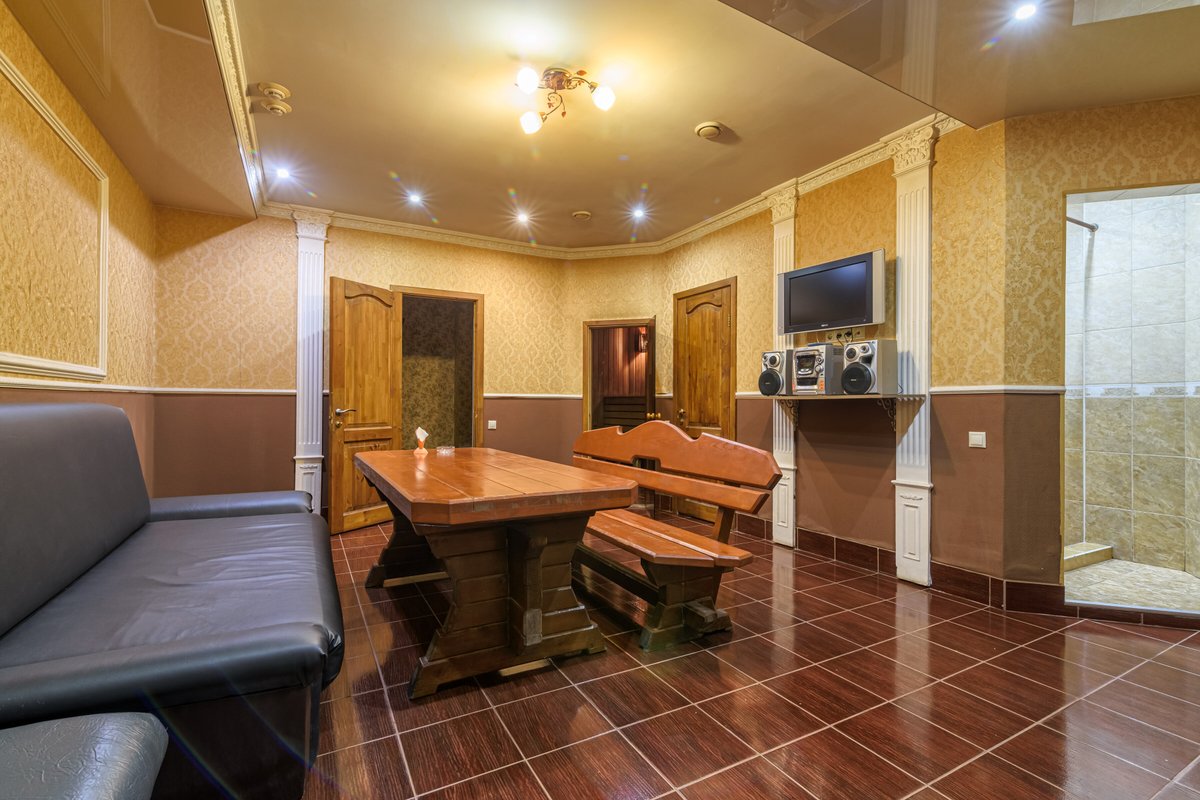Не хочется в бассейн? Не беда! Вместо этого можно провести время в нашей комнате отдыха. Мы ставили своей целью создать здесь уютный, практичный интерьер из преимущественно натуральных, безопасных материалов, подобрать мебель, которая будет в равной степени удобной и приятной глазу. Надеемся, что он придется вам по душе! Для поддержания атмосферы отдыха мы можем предложить вам камин и караоке. Также у нас имеется бар, где вы можете приобрести блюда русской кухни, а при необходимости прийти и с собственной едой - мы не возражаем! Главное помните, что плотная трапеза незадолго перед посещением парной - это не самая удачная идея, по мнению докторов. А вот после парной можно трапезничать смело!